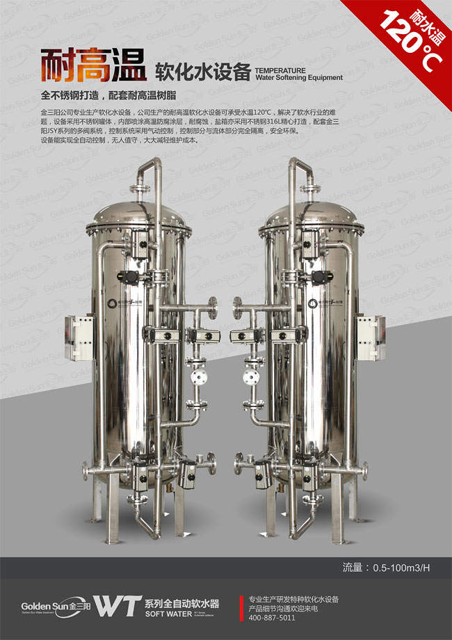 金三陽公司專業(yè)生產(chǎn)軟化水設備,公司生產(chǎn)的耐高溫軟化水設備可承受水溫120℃,解決了軟水行業(yè)的難題,設備采用不銹鋼罐體,內部噴涂高溫防腐涂層,耐腐蝕,鹽箱亦采用不銹鋼316L精心打造,配套金三陽JSY系列的多閥系統(tǒng),控制系統(tǒng)采用氣動控制,控制部分與流體部分隔離,安全環(huán)保。 JSY系列耐高溫軟化水設備能實現(xiàn)全自動控制,無人值守,大大減輕維護成本。 關于更多JSY系列耐高溫軟化水設備信息歡迎與我們的工程師溝通18932295779(王)