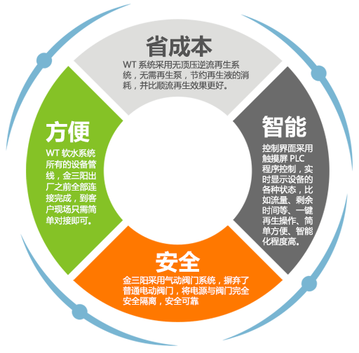 JSY-WT系列軟水系統(tǒng),創(chuàng)新地應(yīng)用了模塊化設(shè)計思維,客戶對設(shè)備產(chǎn)水量的高低,通過增加軟水設(shè)備模塊來實現(xiàn)增減,最多可以實現(xiàn)5個單獨軟水模塊并聯(lián),系統(tǒng)總控柜可以實現(xiàn)一控一,一控二.....一控五(產(chǎn)水量325m3/h),操控設(shè)備更加方便簡捷,模塊隨意增減,極大降低了客戶的后期投資費用。